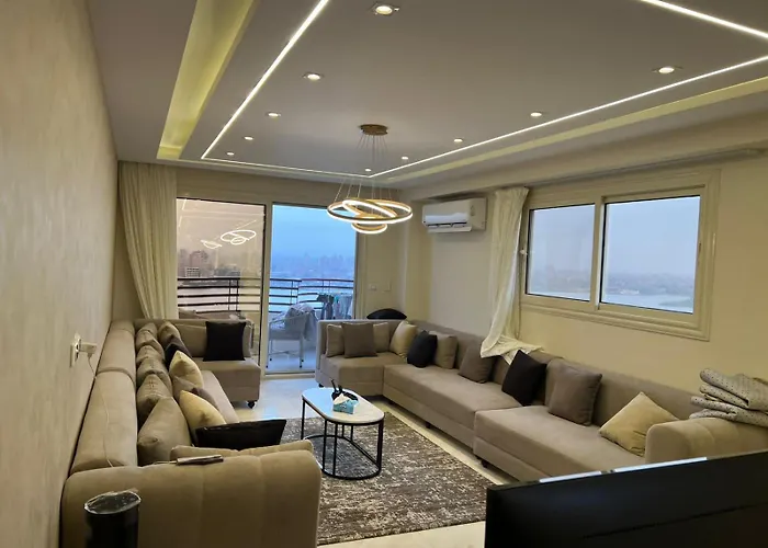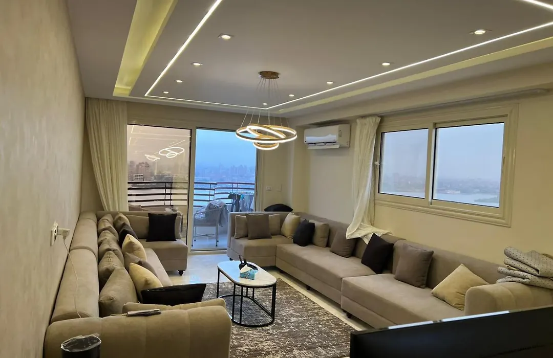 A fully-fitted kitchen is ideal for preparing home-cooked meals. Nile View 3 Full Bedroom Apartment is located 40 km from Cairo International airport.